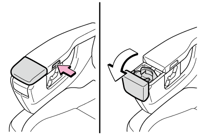 収納装備を使わないときは、フタを必ず閉じてください。急ブレーキや急旋回時などに、開いたフタに体があたったり、収納していたものが飛び出したりして、思わぬ事故につながるおそれがあります。