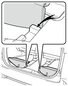 デッキボードを取りはずしたときは、走行前に必ずもとどおりに取り付けてください。取りはずしたまま走行すると、急ブレーキをかけたときなどにデッキボードや収納していたものが飛び出し、思わぬ事故につながるおそれがあり危険です。