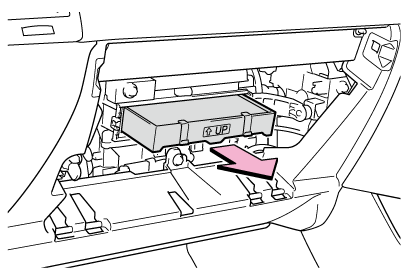 必ず指定の手順(→交換するには)に従って取りはずしてください。正しい方法で取りはずさないと、グローブボックス下部の結合部が破損するおそれがあります。