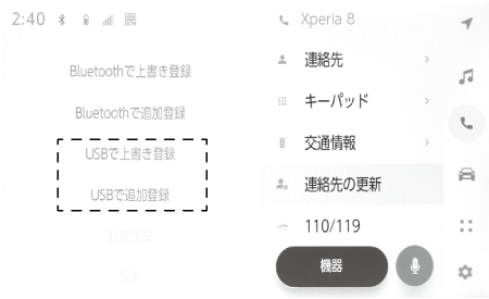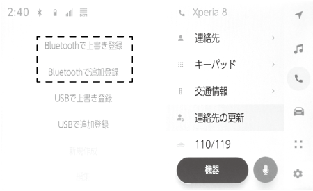 連絡先を自動転送(PBAP)するには、Bluetooth®設定で[自動転送]をON にする必要があります。(→Bluetooth®機器を設定する)