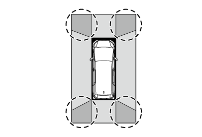 車両付近には死角があり、表示されない領域があります。画面では車両の周辺に何も表示されていなくても、実際には障害物が進路上にあるため、接触することがあります。必ず周囲の安全を直接確認してください。