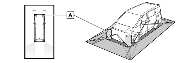 • 高い位置にある立体物(張り出しのある壁やトラックの荷台など)は、画面に映らない場合があります。周囲の安全を直接確認してください。