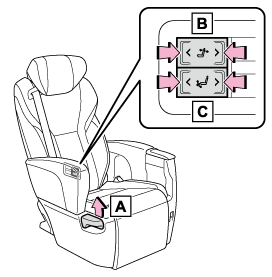• つまずいてけがをするのを防ぐため、車に乗り降りする際、オットマンを上げているときは格納してください。