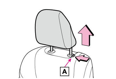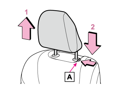 を押しながら操作します。必ずヘッドレストの中心が両耳のいちばん上のあたりになるよう調整してください。