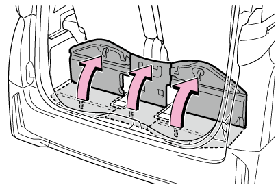 デッキボードを取りはずしたときは、走行前に必ずもとどおりに取り付けてください。取りはずしたまま走行すると、急ブレーキをかけたときなどにデッキボードや収納していたものが飛び出し、思わぬ事故につながるおそれがあり危険です。