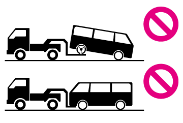 けん引は、できるだけトヨタ販売店または専門業者にご依頼ください。その場合は、レッカー車または、車両運搬車を使用することをおすすめします。