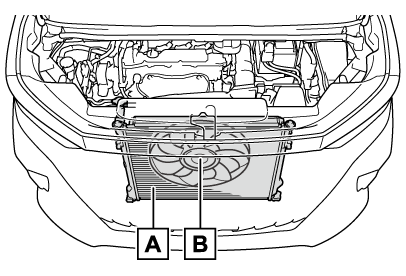 冷却ファンが回転しているときはエンジンルーム内にふれたり、近付いたりしないでください。