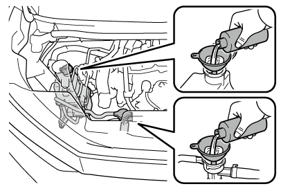 エンジンが熱いときに急に冷たい冷却水を入れると、エンジンが損傷するおそれがあります。