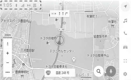 Bluetooth®接続されている携帯電話の接続状態が表示されます。アイコンにタッチすると、Bluetooth®機器の設定画面を表示できます。(→Bluetooth®機器を設定する)