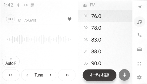 地域や車の向きなどの条件により、周波数の受信感度が悪い場合、自動で選局できないことがあります。