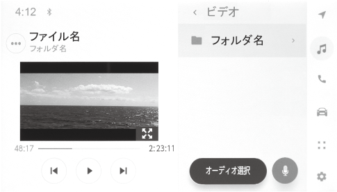 サブメニューのフォルダー名/ファイル名:フォルダー名にタッチすると、フォルダー移動し、ファイル名にタッチすると、再生するファイルを変更できます。