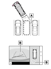 - 駐車ガイド線もっとも後方へ小まわりしたときの進路の目安を示します。