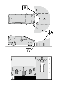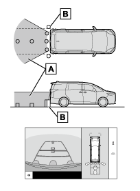 車両付近には死角があり、表示されない領域があります。画面では車両の周辺に何も表示されていなくても、実際には障害物が進路上にあるため、接触することがあります。必ず周囲の安全を直接確認してください。
