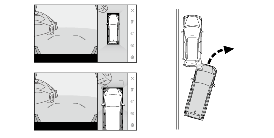 パノラミックビューに表示されている車両アイコンと、路面や障害物との位置関係は実際の位置とは異なる場合があります。