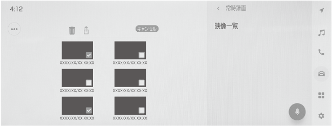 [手動録画]、[イベント録画]または[駐車中の録画]を選択した場合、[映像一覧]にタッチします
