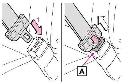 プレートがバックルに確実に挿し込まれているか、シートベルトがねじれていないかを確認してください。うまく挿し込めない場合はただちにトヨタ販売店に連絡してください。