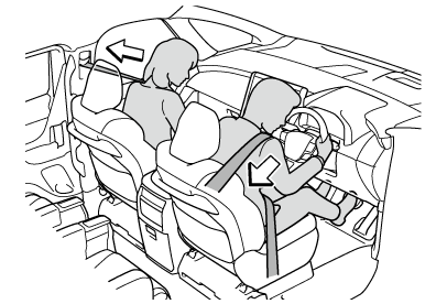 前方・側方から強い衝突を受けたとき、シートベルトを引き込むことで適切な乗員拘束効果を確保します。