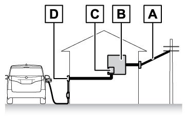 屋外で充電する場合は、軽負荷電動車両充電用コンセントに接続してください。