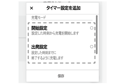 充電モードを“開始設定”に設定したときは、充電開始時刻に作動します。