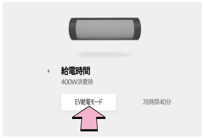 表示される時間は400W消費時の目安であり、電気製品の使用状況や、使用環境などにより実際の外部給電可能時間が異なる場合があります。