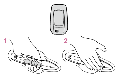 ドアハンドル表面のロックセンサーに指でふれても施錠できないときは、手のひらでロックセンサーにふれてください。