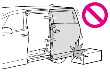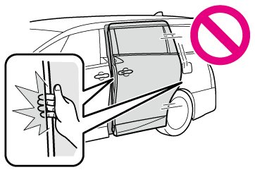 スライドドアを開けるときは縁石や壁などにあたらないように注意してください。スライドドアを損傷するおそれがあります。