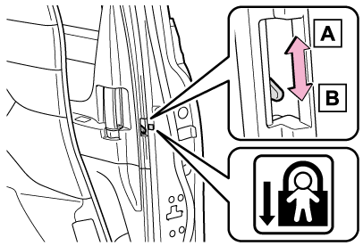お子さまをリヤ席に乗せるときは、チャイルドプロテクター(→チャイルドプロテクター)を使用して車内からドアが開かないようにする