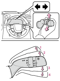 - 右側へ車線変更(レバーを途中まで動かして離す)右側方向指示灯が5 回点滅します。