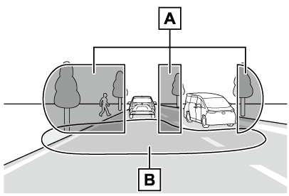 • 連続するカーブや中央分離帯、街路樹などで前方車両が見え隠れするとき
