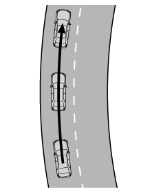 • 先行車/周辺車がレーン内を右、または左に片寄って走行したとき(先行車/周辺車の動きに合わせて自車も片寄って走行しレーンをはみ出すおそれがあります)
