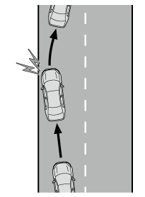 方向指示灯の点滅中であっても、となりの車線を走行中の車両と衝突する可能性があるとシステムが判断した場合、車線逸脱警報機能が作動します。