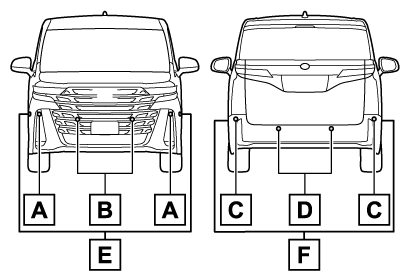 • センサー周辺へ衝撃を与えないでください。衝撃を受けた際はトヨタ販売店で点検を受けてください。前後のバンパーやグリルの脱着や交換が必要な場合はトヨタ販売店にご相談ください。