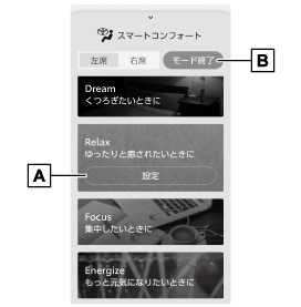 “Relax”、“Focus”、“Energize”は、あらかじめ登録された設定は異なりますが、設定できる項目は同じです。