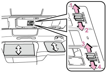 短時間にサイドサンシェードの開閉をくり返すと、モーターのオーバーヒート防止のために作動制限することがあります。