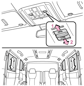 サイドサンシェードが閉まっているときにリヤドアガラスを開けると、サイドサンシェードも開きます。