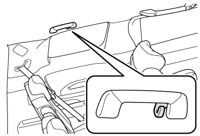 天井に取り付けられているアシストグリップは、走行中にシートに座っている状態で体を支えるときにお使いください。