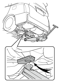ガレージジャッキを使用して車両を持ち上げるときは、正しい位置にガレージジャッキをセットしてください。