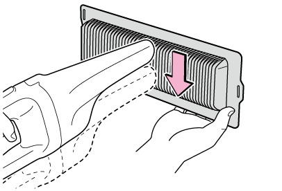 - フィルターからほこりや砂などを取り除く掃除機などを使用して、折り目に沿って軽くなぞるように吸引してください。