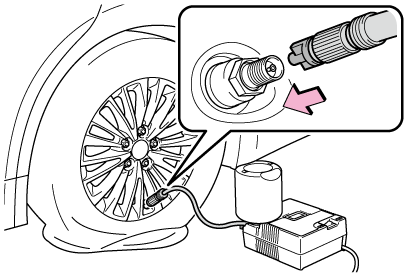 タイヤパンク応急修理キットで応急修理したタイヤの修理・交換については、トヨタ販売店にご相談ください。