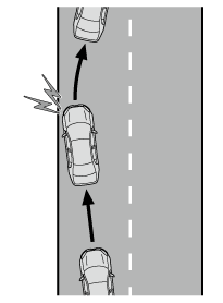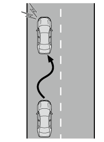 BSM装着車:方向指示灯の点滅中であっても、となりの車線を走行中の車両と衝突する可能性があるとシステムが判断した場合、車線逸脱抑制機能が作動します。