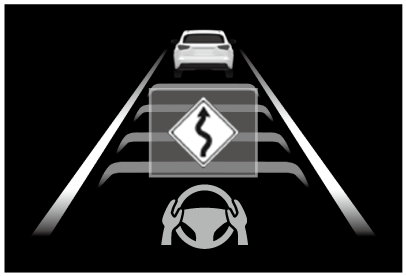 カーブを認識すると車速の抑制を開始します。カーブが終了すると車速の抑制が終了します。