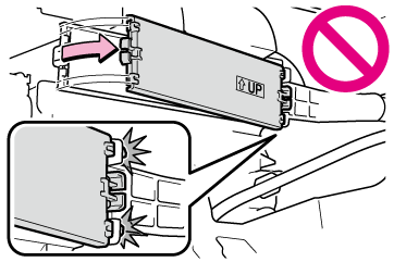 フィルターカバーのロックをはずすときに、フィルターカバーを矢印の方向に動かす際は、ツメに無理な力がかからないように注意してください。ツメが破損するおそれがあります。