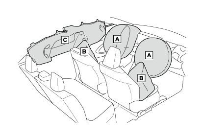 次のエアバッグは、衝撃の強さが設定値(移動も変形もしない固定された壁に、車速約20~30km/hで正面衝突した場合の衝撃の強さに相当する値)以上の場合に作動します。