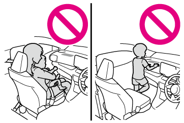 お子さまを助手席SRSエアバッグの前に立たせたり、ひざの上に抱いたりしない