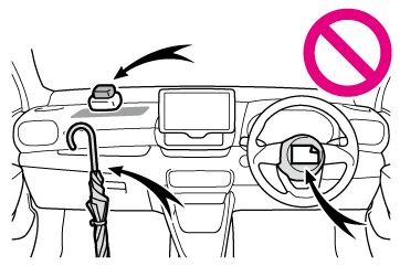 ダッシュボード・ハンドルのパッド部分などには何も取り付けたり、置いたりしない
