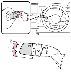 レバーを前方へ押すとワイパーと連動してウォッシャーが作動します。