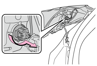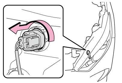 ソケットを軽くゆさぶってぐらつきがないことを確認し、いったんヘッドランプを点灯させ、ソケットの取り付け部からランプの光がもれてないことを目視確認してください。
