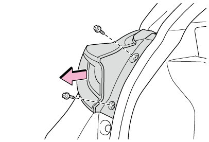 2. ボルト(2本)をはずし、ランプ本体をまっすぐ後方に引き、取りはずす
