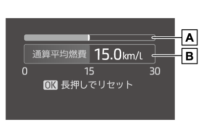 平均燃費をリセットするには、メーター操作スイッチのを長押しします。