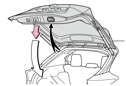 開閉作動中にスイッチを押すと、作動が停止します。作動が停止した状態から再度スイッチを約1秒間押し続けると、バックドアは反転作動します。